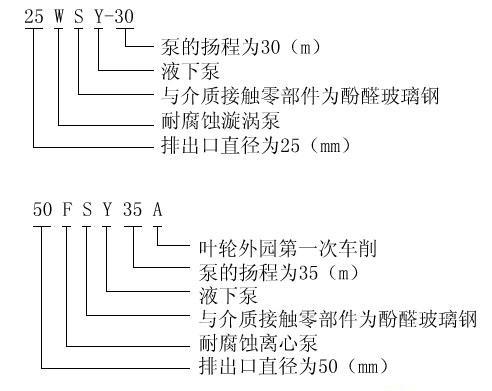 三、FSY型、WSY型立式玻璃鋼液下泵型號(hào)意義: